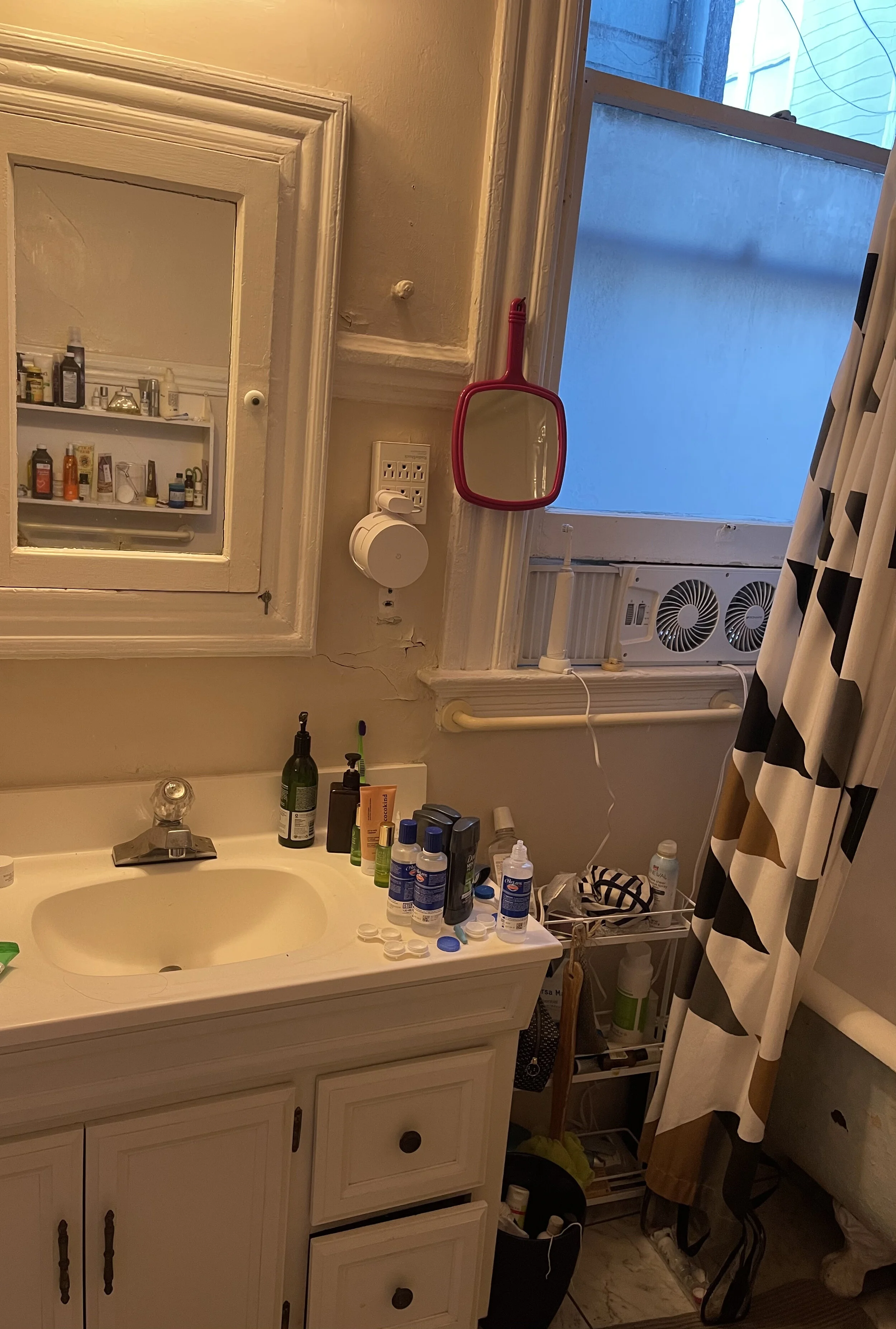Since the bathroom window faces an exterior wall, choosing a bright white was important to lift the mood in this space. Painting the walls and updating the sink’s faucet were our two biggest tools. This bathroom update cost only about $1,000.